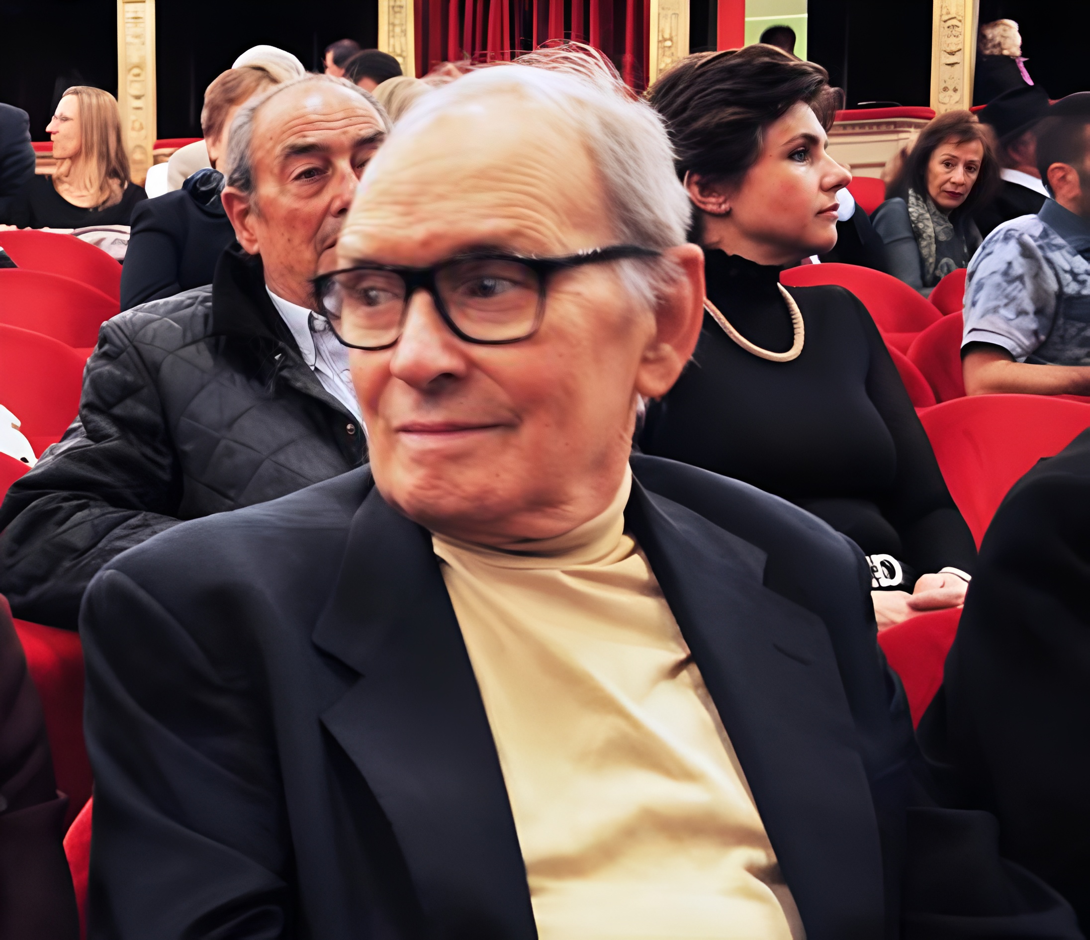 Morricone al Teatro Argentina di Roma prima dell'esecuzione di Arcate di archi e bambini in esclusiva mondiale per Sonora.